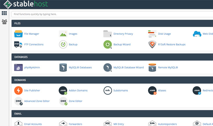 Vi använder oss utav cPanel för alla kunder, detta gör att vi har en panel som är standard i hosting industrin och något alla kan. Vi har inte utvecklat något eget som är svårt att förstå och fullt med buggar och problem.